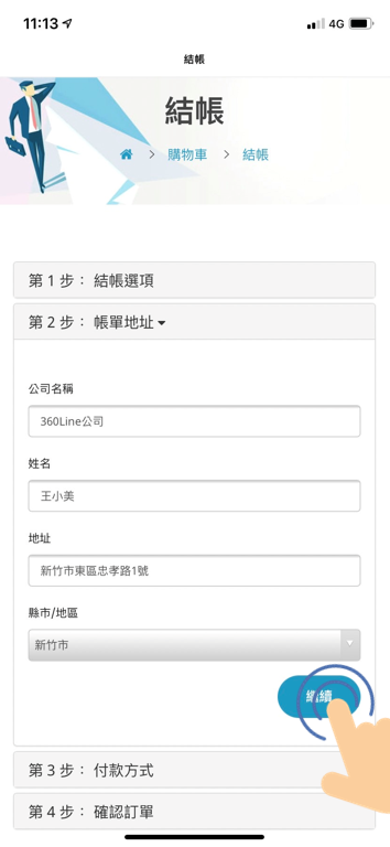 目錄 搜索 展開 360LINE電子名片一、購買流程1.購買序號2.至購物車結帳3.填寫帳單地址 (非必填)4.確認付款方式5.確認訂單6.訂單提交7.匯款完成,啟用序號二、開通、啟用序號流程1.搜尋ID : @360line 加入2.點選註冊/登入3.會員帳號設置三、啟用序號方法(一)方法(二)四、360LINE官方帳號使用說明1.查找名片2.我的名片3.分享我的名片4.編輯名片5.推薦好友6.會員資料 暫無相關搜索結果! 閱讀次數:751 本文檔使用 CLEARONE 發布 3.填寫帳單地址 (非必填) 3.填寫資料,帳單地址(非必填)作者:Anne 创建时间:2022-06-20 11:00最后编辑:Anne 更新时间:2022-06-21 08:55